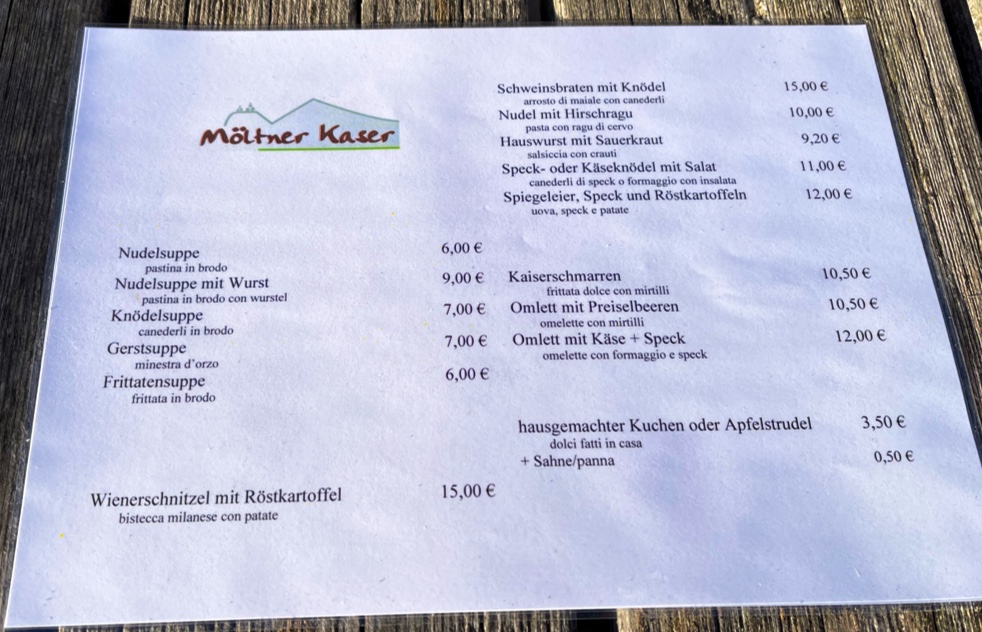 If you seek both great food and stunning scenery, Möltner Kaser is the perfect destination.